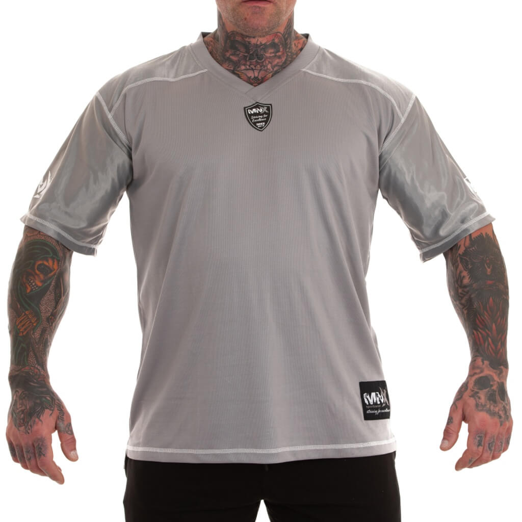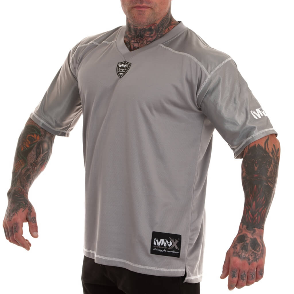 MNX Football jersey in stunning grey color with rubber MNX logos, made of breathable micro mesh fabric. It’s perfect for workout or casual wear.