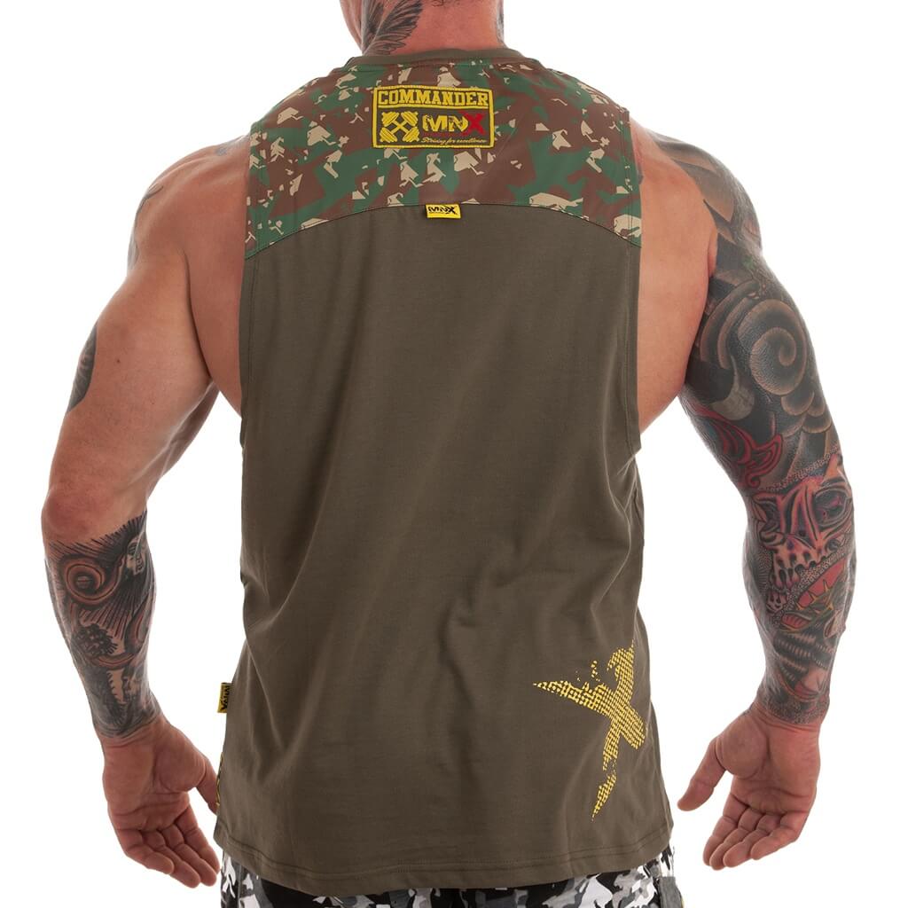 Sleeveless top Commander for all the lovers of army styled clothing. Slightly oversized fit. Made of lightweight cotton and breathable mesh fabric on shoulders. Printed MNX graphics on front and back and special embridered patches.