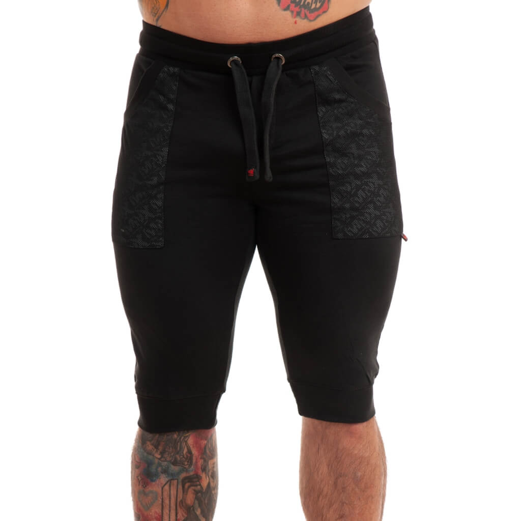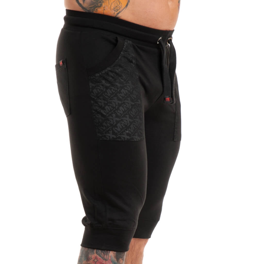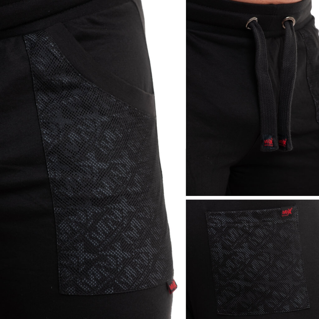 MNX shorts Force in black, made of 100% cotton with elasticated cuffs. Big printed pockets on front and one on the back with netting for special look. Elastic waistband with inner drawcord for an adjustable fit. Available also in olive green color.