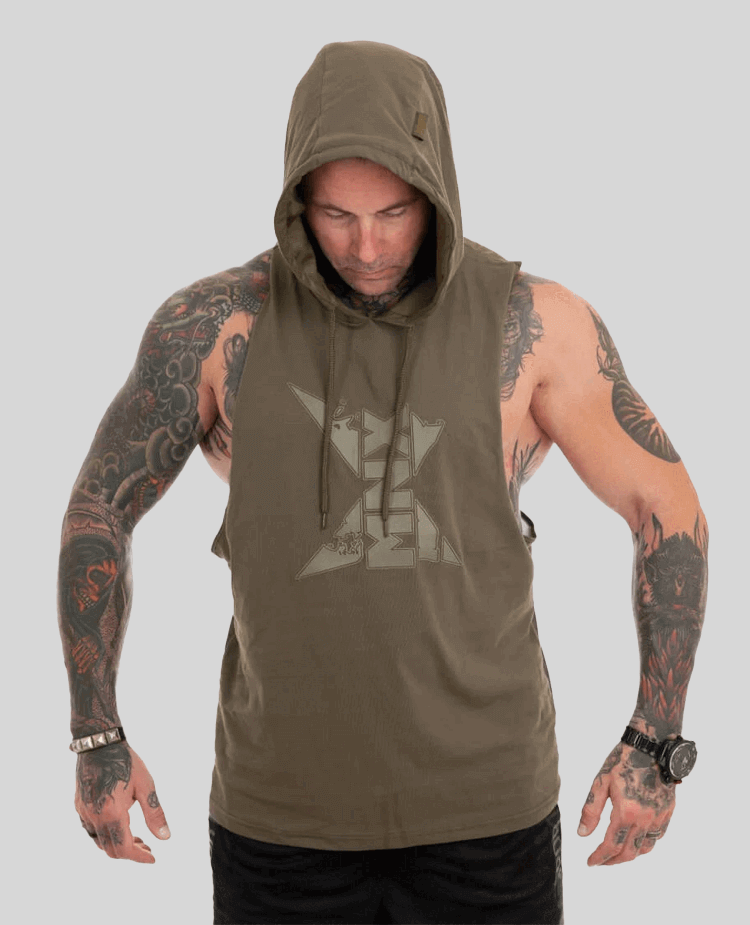 Free your arms in this comfortable and extra stylish MNX hooded tank top in army style. Cotton fabric in front and breathable mesh fabric on the back. Full original detailed MNX print and rubber logo on front. Available in sizes S – 3XL.