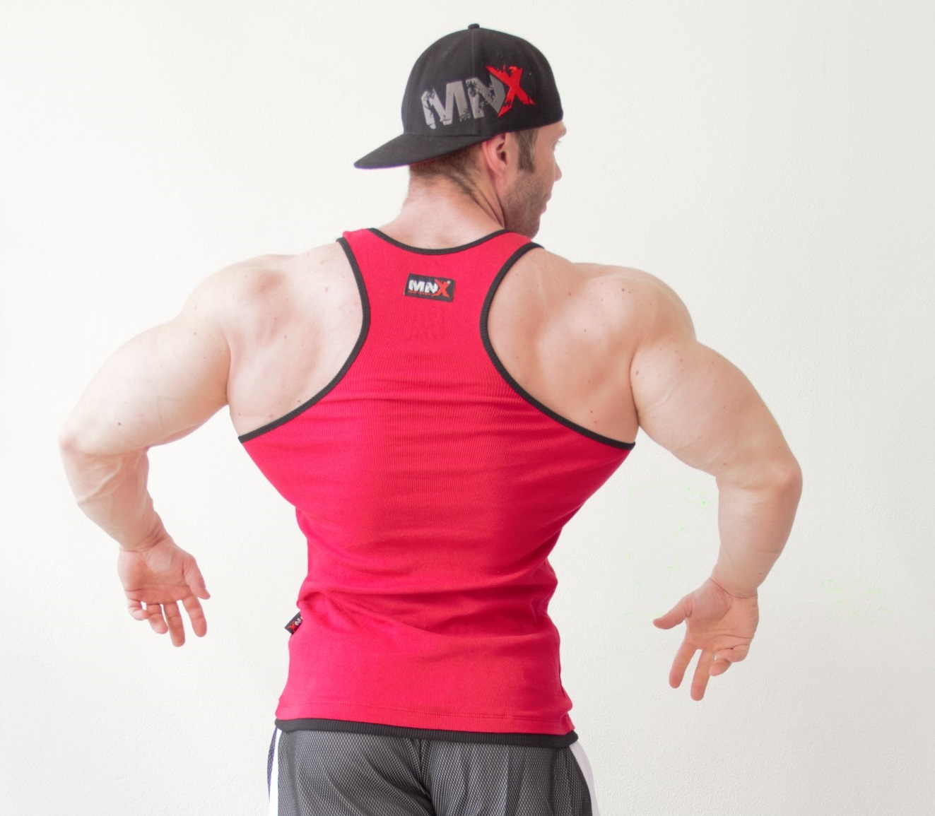 MNX Red&Black ribbed tank top fits well. It is made of light material that makes it easy and comfortable to wear. Available in different colors.