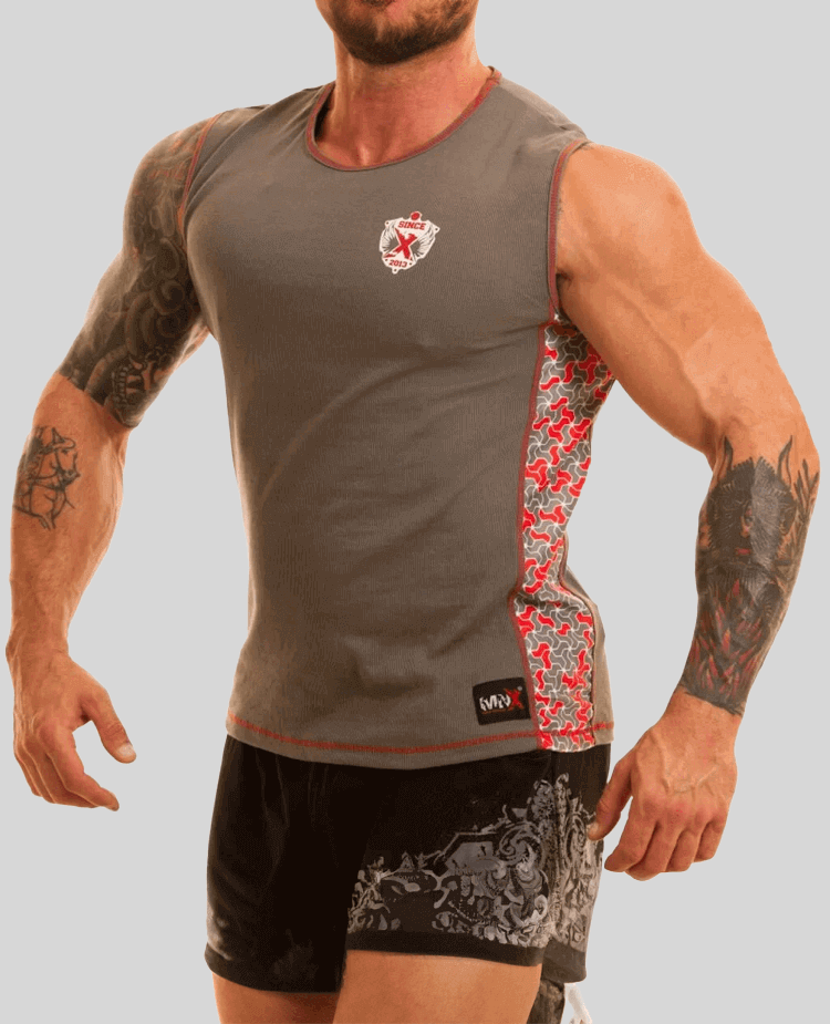 MNX Sleeveless ribbed T-shirt, made of 100% cotton. MNX geometric pattern on both sides and MNX royal logo, printed in front and back, make perfect look for your gym or casual wear.