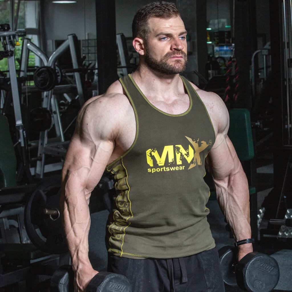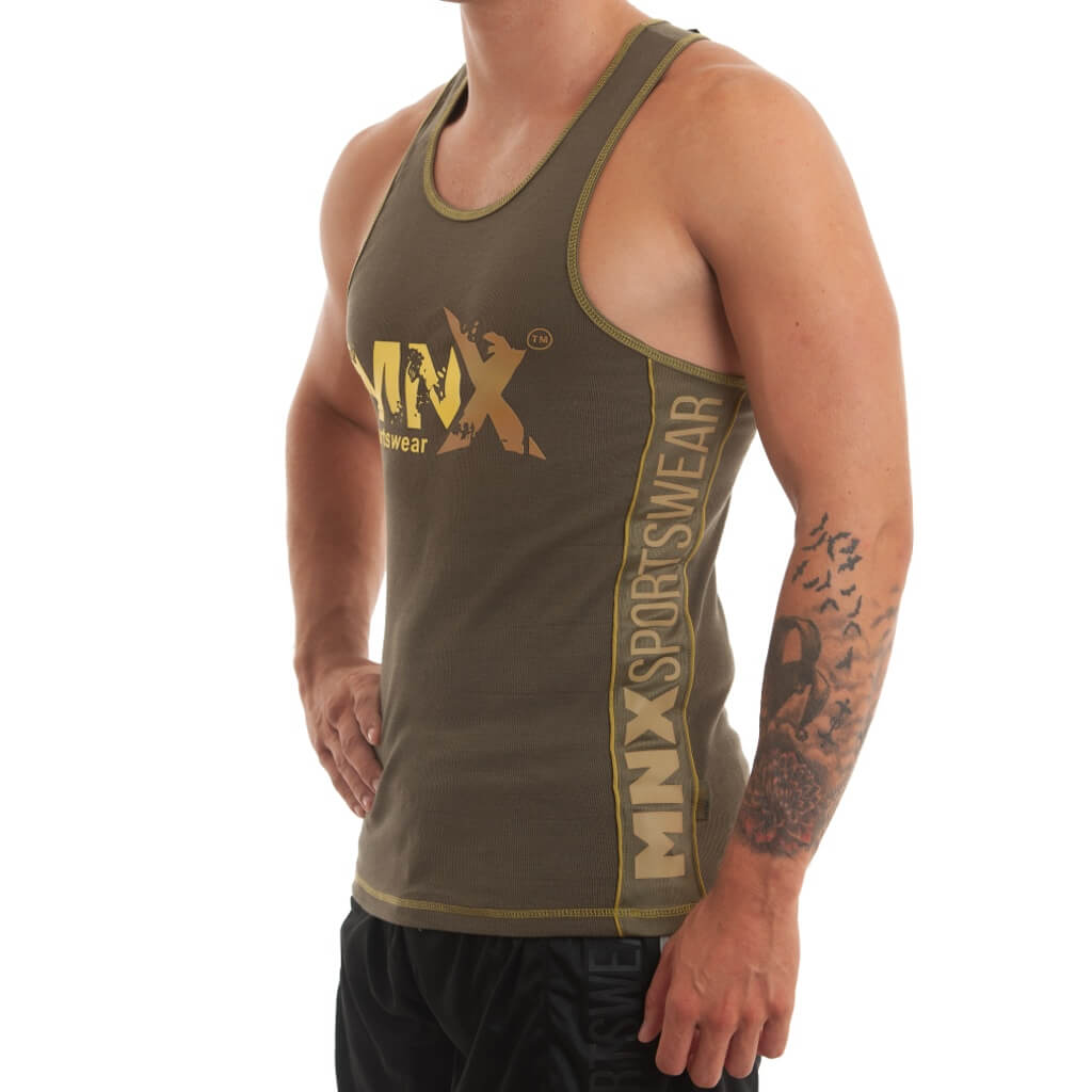 MNX Ribbed Tank top in army green color, made of 100% soft cotton that fits your body well. Breathable mesh fabric on both sides and rubber MNX logos. This tank top is perfect for your casual look.