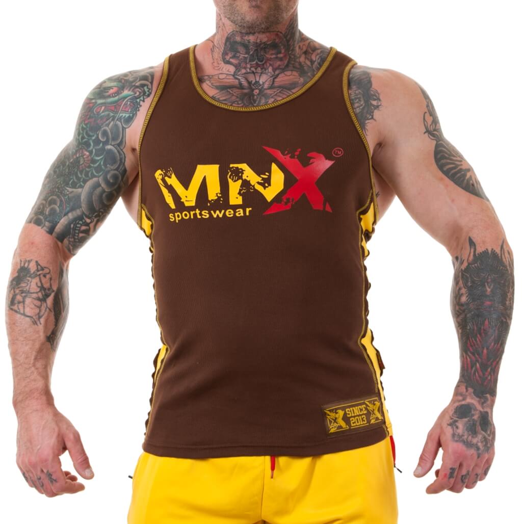MNX Ribbed Tank top in brown color, made of 100% soft cotton that fits your body well. Breathable mesh fabric on sides in yellow color. With new MNX embroidered patch on front. This tank top is perfect for your casual look. Available in sizes S – 3XL.