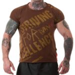 Ripped T-shirt Motion with short sleeves for your casual wear. Brown color with yellow “Striving for excellence” quote. Made of 100% pure cotton for maximum comfort. Available in sizes S-3XL.