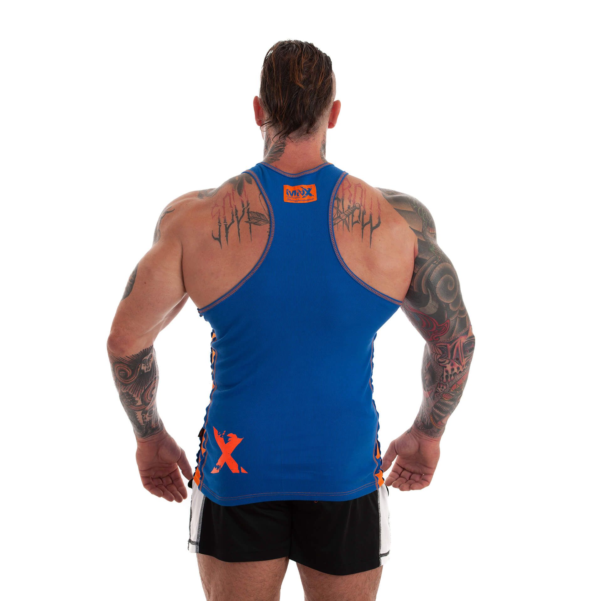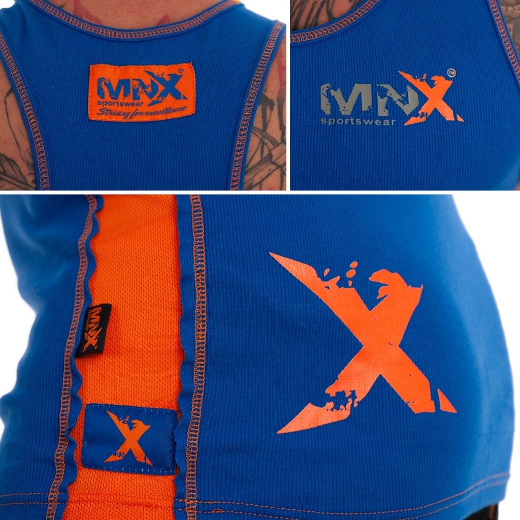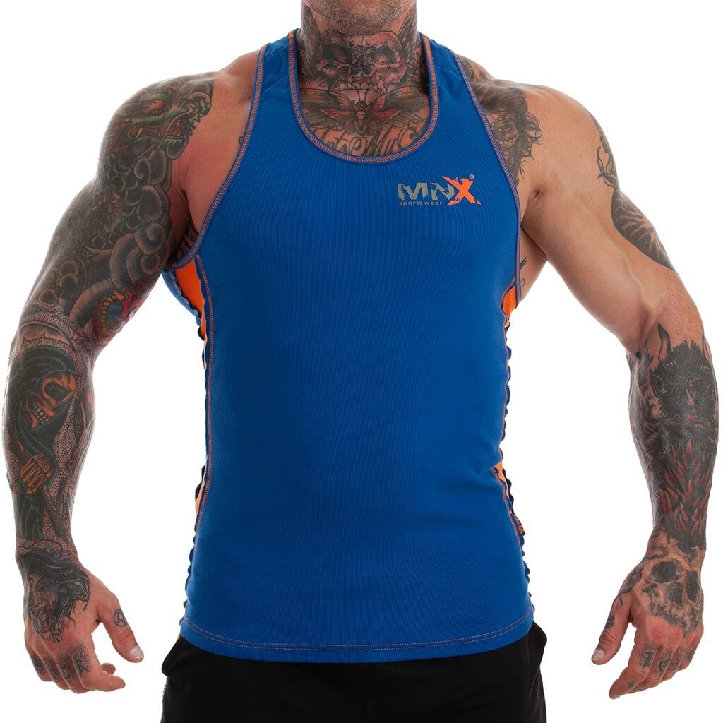 MNX Ribbed Tank top in blue color, made of 100% soft cotton that fits your body well. Breathable mesh orange fabric on both sides. Two embroidered patches and printed MNX logos. This tank top is perfect for your casual look. Available in sizes S – 4XL.